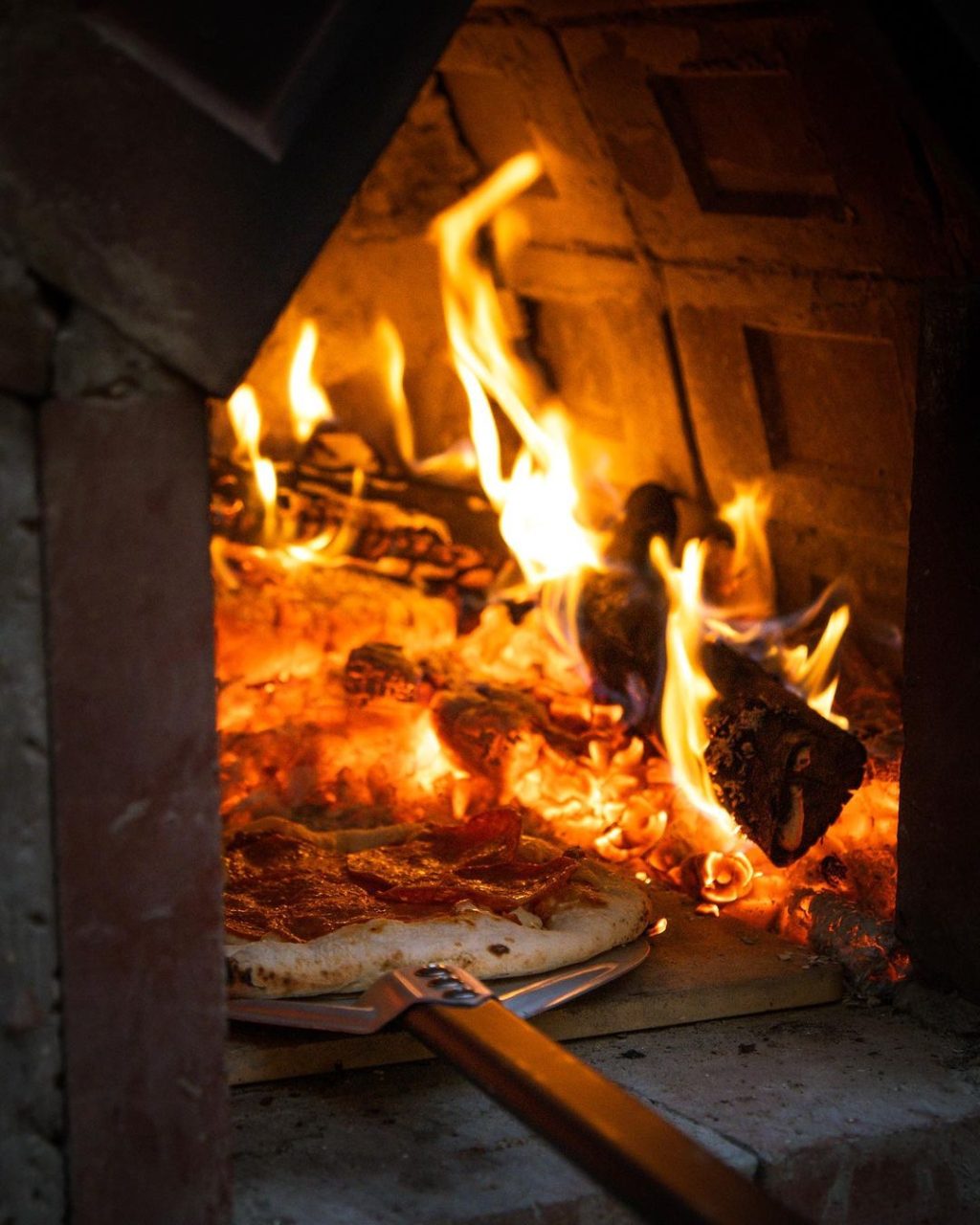 3. Cooking in the Oven: The pizzas are baked in a handcrafted brick oven, ensuring a crispy crust and perfectly cooked toppings.