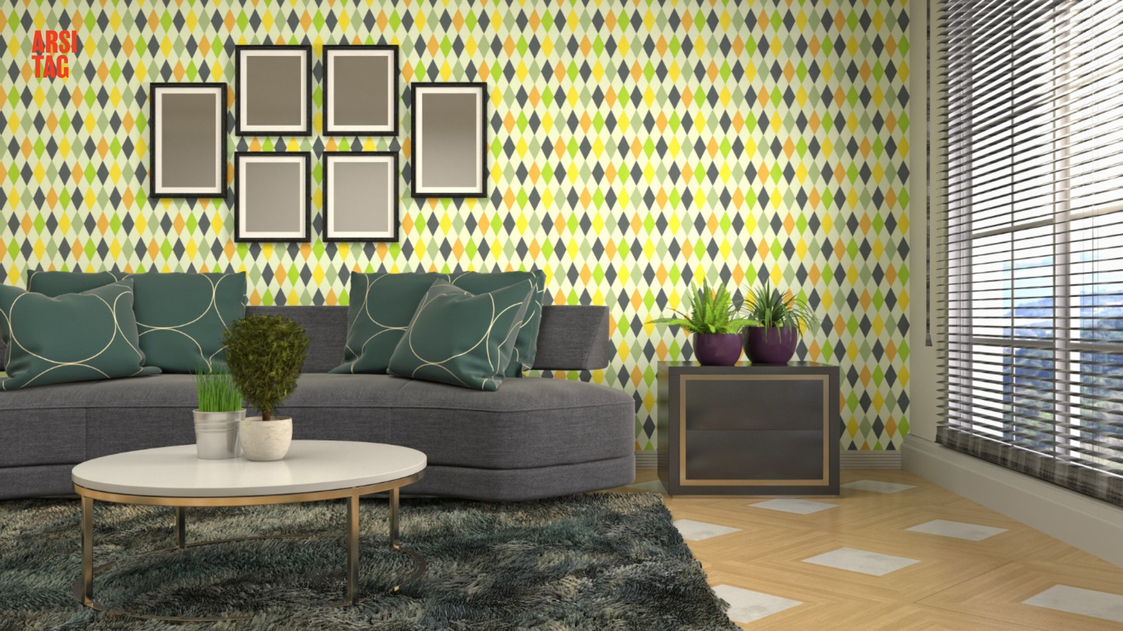 Bagi pecinta gaya modern, motif geometris wallpaper dinding ruang tamu adalah pilihan ideal. Pola garis, segitiga, atau bentuk abstrak mampu memberikan struktur visual pada dinding yang polos, serta menambah dimensi pada ruangan yang sempit.